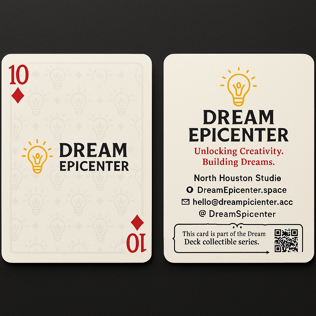 At Dream Epicenter, we believe your card should do more than share your name — it should tell your story. That’s why we’ve created Dreamer Decks: bold, branded cards designed for networking, visibility, and creative connection.
